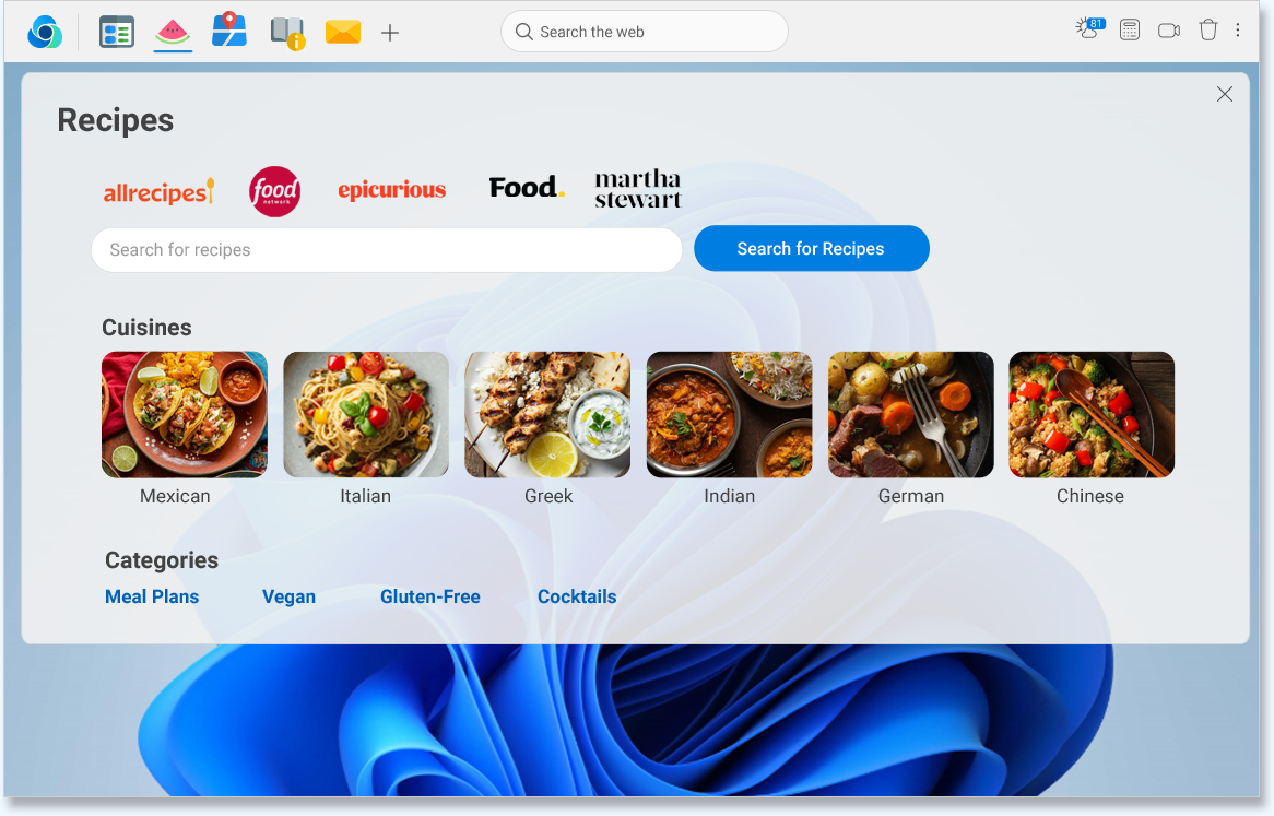 Access millions of recipes for free. Download our all-in-one convenient Recipe app located at the top of your desktop, along with the browser for easy and free recipes.